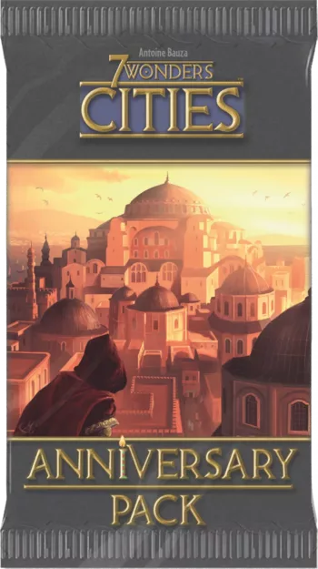 Das 7 Wonders: Cities Anniversary Pack ist eine Mini-Erweiterung für 7 Wonders und 7 Wonders: Cities, die fünfzehn neue Gebäude enthält, darunter ein Denkmal, ein Zollamt, ein Fälscheramt und ein Schmugglerversteck.