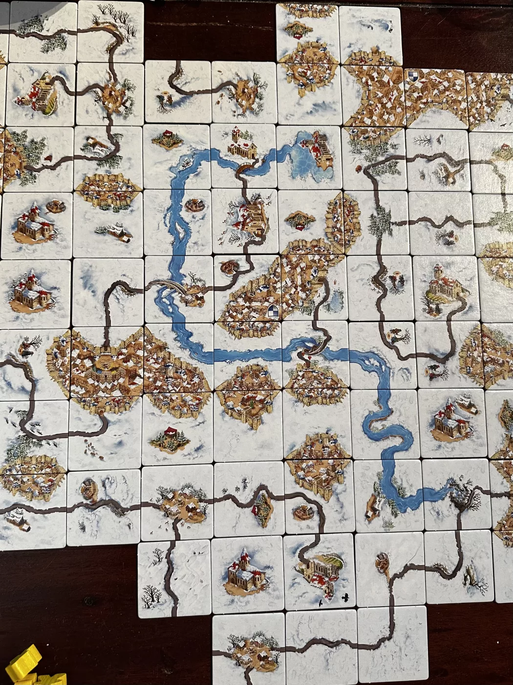 Die neue Auflage von Carcassonne: Winter Edition von Hans im Glück (2020, nur in Deutschland) enthält nun die Erweiterung „The River“, die nicht separat erhältlich ist.
