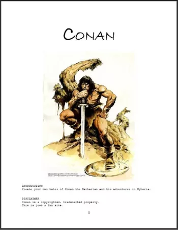 „Erstelle deine eigenen Geschichten über Conan den Barbaren und seine Abenteuer in Hyboria. Alle Spieler teilen sich ein einziges gemeinsames Kartenspiel. Das Kartenspiel enthält sechs Kartensorten: Conan-Karten, Orte, Ereignisse, kleinere Gegner, größere Gegner und Sonderkarten. Jede Sorte umfasst mehr als 30 Karten.“