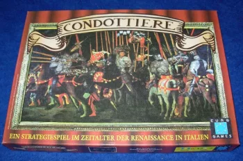 Das Ziel von Condottieri ist es, vier zusammenhängende Provinzen im Italien der Renaissance zu erobern. Dazu versteigern die Spieler verschiedene Provinzen auf dem Spielbrett und bieten auf diese Provinzen mit einem Blatt Karten, das Söldner, Jahreszeiten, Vogelscheuchen und politische Persönlichkeiten darstellt. Im Gegensatz zu herkömmlichen Auktionen, bei denen nur der Höchstbietende sein Gebot verliert, verliert in Condottiere jedoch jeder Spieler sein Gebot. Die Spieler bieten also praktisch die Anzahl an Truppen, die sie bereit sind zu verlieren, um eine Provinz zu gewinnen. Mehrere Karten mit Spezialeffekten sorgen jedoch für Überraschungen und halten die Spieler in Atem.