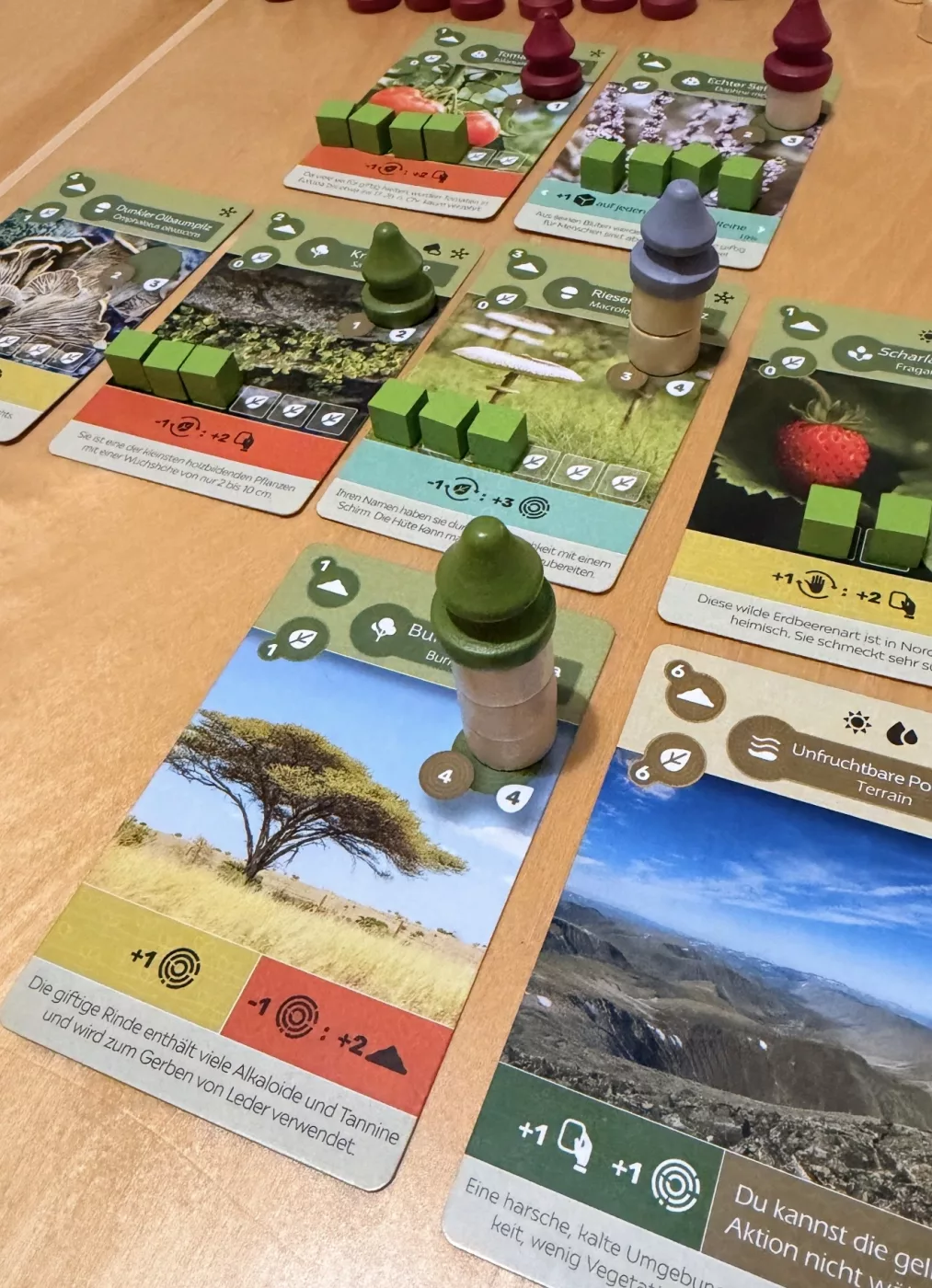 Die Spieler schaffen einen sich selbst tragenden Motor für Wachstum, Expansion und Versorgung, bei dem sogar Ihre ungenutzten Pflanzen zu Kompost für zukünftiges Wachstum werden. Sie verwenden ihre Karten, um Aktionen (die alle Spieler betreffen) auszuwählen und Ressourcen zu erhalten. Der erste Spieler, der sein Tableau vervollständigt, löst das Ende des Spiels aus. Der Spieler mit den meisten Punkten gewinnt. – Beschreibung des Verlags