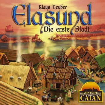 This is the second game in the 'Abenteuer Catan' (Catan Adventures) series that started with Candamir: The First Settlers. The theme of Elasund is based on the 'Die Siedler von Catan' novel written by Rebecca Gablé, itself based on the original The Settlers of Catan game. In Elasund, players compete and cooperate to build the premier city of Catan.