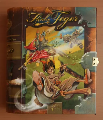 „Wicked Witches Way“ ist ein Brettspiel, bei dem du das Kommando über einen fliegenden Hexenbesen übernimmst, den du mit Mut und Geschick steuern musst.