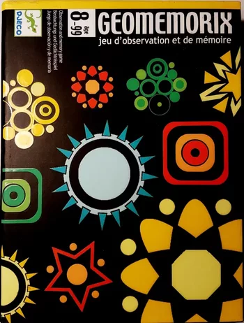 Ein abstraktes Gedächtnis- und Beobachtungsspiel. Inhalt: 8 runde Karten, 42 rechteckige Karten. Spielvorbereitung: Legen Sie die 8 runden Karten verdeckt in 2 Reihen zwischen den Spielern aus. Legen Sie die rechteckigen Karten verdeckt in einem Stapel neben die runden Karten. Um Karten zu gewinnen, müssen Sie sich die Position der Formen und Farben merken.