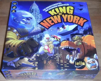 In der Stadt, die niemals schläft, ist immer etwas los. Vielleicht sind es die Lichter, vielleicht ist es die Energie oder vielleicht sind es die riesigen Monster, die versuchen, den Ort zu zerstören! King of New York ist ein eigenständiges Spiel des Designers Richard Garfield, das die Kernideen von King of Tokyo beibehält und gleichzeitig neue Spielmöglichkeiten einführt. Wie in KoT ist es Ihr Ziel, als erstes Monster 20 Siegpunkte (SP) zu sammeln oder als letztes Monster übrig zu bleiben. In Ihrem Zug würfeln Sie bis zu dreimal mit sechs Würfeln und führen dann die Aktionen auf diesen Würfeln aus. Klauen fügen anderen Monstern Schaden zu, Herzen heilen Ihren eigenen Schaden und Energie wird gespeichert, damit Sie Kraftkarten kaufen können, die einzigartige Effekte bieten, die niemand sonst hat.
