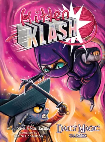 Genau wie Kätzchen, die um die Vorherrschaft kämpfen, versetzt Kitten Klash zwei Spieler in einen rasanten Wettlauf, um die meisten passenden Karten aus einem sich ständig verändernden Tableau zu ergattern. Um dieses blitzschnelle Echtzeit-Spiel zu gewinnen, braucht man die Aufmerksamkeit eines Tigers und die Schnelligkeit eines Geparden. Genauer gesagt legen die Spieler kontinuierlich Karten in zwei Reihen mit drei gegenüberliegenden Stapeln aus und halten dabei Ausschau nach horizontalen oder vertikalen Farbübereinstimmungen. Wenn Sie eine finden, greifen Sie schnell-schnell-schnell zu, um beide Stapel zu ergattern, und legen dann weiter Karten aus, bis Sie die nächste Übereinstimmung finden. Wenn ein Spieler keine Karten mehr hat, endet die Runde und die Spieler zählen ihre Punkte aus den Karten, die sie ergattert haben: 1 Punkt für jede Ihrer eigenen Karten und 2 Punkte für jede Karte Ihres Gegners.