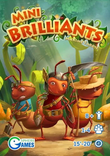 Der lange, heiße Sommer neigt sich dem Ende zu, und die Ameisenkolonien in der ruhigen Waldlichtung verstärken ihre Bemühungen, sich auf den kommenden Winter vorzubereiten. Königinnen brüten Ameisen aus, um die Population ihrer Kolonie zu vergrößern, Bauern und Jäger durchkämmen die Gegend, um Nahrungsvorräte anzulegen, und Gräber graben Tunnel, um das Territorium ihrer Kolonie zu erweitern. Wirst du in der Lage sein, die Ernteziele deiner Kolonie zu erfüllen? Wirst du es schaffen, die feindlichen Ameisen bei den schwindenden Ressourcen der Lichtung zu besiegen? Wirst du es schaffen, den gefürchteten Raubtieren auszuweichen? Wirst du deine Kolonie zum Sieg führen? Wirst du der brillanteste Ameisenkönig sein? In ihrem Zug spielen die Spieler entweder eine Ameise, ein Raubtier oder brüten eine neue Ameise aus, um möglichst effektiv zu sein. Die Spieler kämpfen um die gleichen Ziele, also achte darauf, was deine Gegner tun. Das Spiel endet, wenn ein Spieler sein sechstes Ziel erreicht hat oder wenn keine Ressourcen mehr zu sammeln sind. Mini BrilliAnts ist ein Kartenspiel mit Ameisen, das in 15 Minuten gespielt werden kann. Es ist ein Ressourcen-Sammelspiel für 2 bis 4 Spieler, bei dem es darum geht, Ziele zu erreichen, um die meisten Siegpunkte zu erzielen. Der Spieler, dessen Ziele die meisten Punkte wert sind, gewinnt dieses kleine Spiel im Euro-Stil! – Beschreibung des Designers