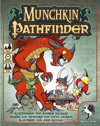 Munchkin Pathfinder enthält 168 Karten und nutzt das Setting des Rollenspiels Pathfinder von Paizo Publishing. Es kann als eigenständiges Spiel gespielt oder mit jedem anderen Munchkin-Kernspiel kombiniert werden. Allerdings enthält Munchkin Pathfinder Klassen und etwas Neues für dieses Set – Fraktionen –, aber das Spiel verwendet keine Rassen.