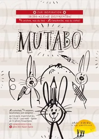 Mutabo ähnelt der kreativen Aktivität, die auf BGG unter dem Namen „Eat Poop You Cat“ bekannt wurde: Ein Spieler schreibt einen Satz auf, gibt das Blatt dann nach links weiter, wo der nächste Spieler das Gelesene zeichnet, den ursprünglichen Satz verdeckt und das Blatt nach links weitergibt, wo ein anderer Spieler das Gesehene aufschreibt usw. Der Hauptunterschied besteht darin, dass es in Mutabo Karten gibt, mit denen die Spieler die erste Situation erstellen, die gezeichnet werden soll. Ein Kartensatz enthält die Anfänge von Sätzen, der zweite die Enden von Sätzen. Jeder Spieler verwendet zwei dieser Karten, um einen ersten Satz zu erstellen, mit dem das Spiel beginnt. Eine Spielrunde endet, wenn die Zettel voll sind. Die Wertung ist weniger wichtig, kann aber durch Abstimmung über die lustigsten Bilder/Sätze erfolgen. Es gibt eine eigenständige Erweiterung: Mini-Mutabo Ein ähnliches Spiel ist Telestrations.