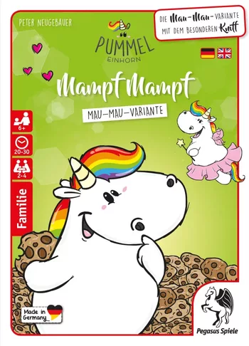 Pummeleinhorn: Mampf Mampf spielt sich ähnlich wie Mau Mau, da die Spieler versuchen, ihre Handkarten abzulegen, indem sie abwechselnd Karten auf einen Ablagestapel legen, wobei sie die Farbe oder Zahl der obersten Karte berücksichtigen müssen.