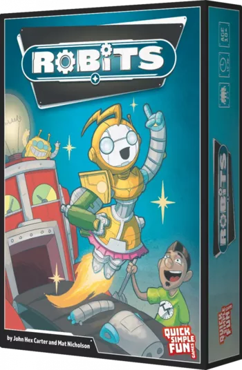 Um ROBiTs vorzubereiten, legen Sie eine Reihe mit sieben Karten offen aus und legen Sie dann für jeden Spieler im Spiel eine weitere Reihe mit sieben Karten darüber. In Ihrem Zug wählen Sie entweder eine offene oder eine verdeckte Karte, decken sie auf (falls erforderlich) und fügen sie Ihrer Sammlung hinzu. Wenn Sie eine offene Karte nehmen, decken Sie die Karte in der Reihe unmittelbar darüber auf.