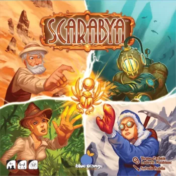 Als Leiter eines internationalen Archäologenteams ist es Ihre Aufgabe, Lager an allen vier Ecken der Welt zu errichten und die längst verlorenen goldenen Skarabäen von Scarabya zu entdecken. Scarabya ist ein Legespiel, bei dem es Ihr Ziel ist, Skarabäen zu sammeln, indem Sie Ihre Spielsteine so platzieren, dass sie geschlossene Zonen von 1 bis 4 Feldern bilden. Jeder Skarabäus in einem geschlossenen Bereich ist so viele Punkte wert, wie die Anzahl der Felder in diesem Bereich beträgt. Alle Spieler spielen nacheinander mit denselben Spielsteinen. In jeder Runde wird ein neuer Spielstein gezogen und alle Spieler legen gleichzeitig ihre Kopie des Spielsteins auf ihr individuelles Spielbrett. Das Spiel ist beendet, nachdem alle 12 Spielsteine gezogen (und entweder gelegt oder abgelegt) wurden. Der Spieler mit den meisten Punkten gewinnt.