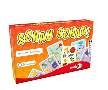 Schau Schau! ist ein einfaches Beobachtungsspiel mit Alexa, bei dem Karten in vier Hintergrundfarben und mit acht Gegenständen verwendet werden. Alexa stellt Fragen, die in der Regel zwei oder drei Gegenstände miteinander verbinden. „Wo siehst du genau ein Kleidungsstück und einen Gegenstand aus der Schule?“ „Wo findest du drei Lebensmittel?“