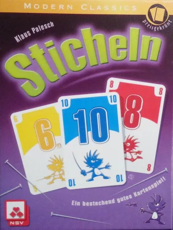Some versions of Sticheln allow for play with up to six players, while the third and fourth German editions of the game include enough cards to allow for play with up to eight players. (These versions also allow players to play the game Hattrick by the same designer, with rules for this game included as a variant.)