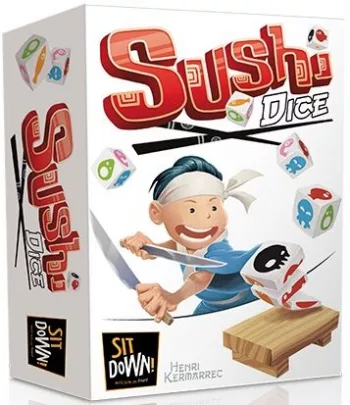 „Sushi Dice“ ist ein zügiges Würfelspiel, bei dem die Spieler gegeneinander antreten, um als Erster ein Sushi-Gericht zusammenzustellen, wobei die Seiten der Würfel die Zutaten darstellen, aus denen Sushi zubereitet wird.