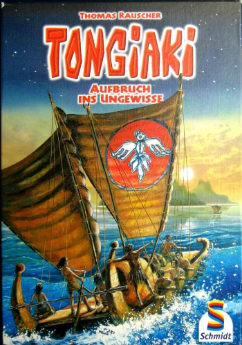 This game uses a unique tile design never seen in any other game (hexes with wavy edges), and is easy to explain and easy to enjoy. Players all begin on the island of Tonga, and immediate overcrowding forces players to search out other islands to populate. For each expedition that leaves, a new tile is placed, revealing either an island, or a "water path" that may or may not have a number from 2-4, indicating that many different players (not number of boats) must make up that expedition for it to survive the voyage (draw and place an additional tile). In this way, the game encourages both cooperative and competitive play at the same time.