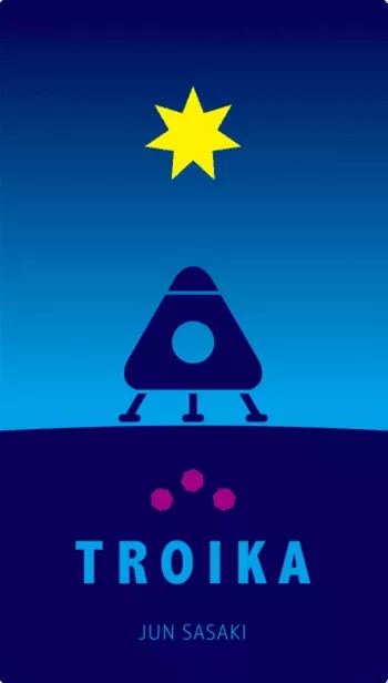 In nicht allzu ferner Zukunft wurde in einem Stern ein Stein gefunden – dann wurden weitere Steine gefunden, und es stellte sich heraus, dass man, wenn man drei dieser Steine auf die richtige Weise kombiniert, einen sehr wertvollen Edelstein erhält. Darüber hinaus kann man sie auf andere Weise kombinieren, um Treibstoff herzustellen. In Troika bist du ein Abenteurer, der davon träumt, ein Vermögen zu machen, und deshalb bist du zusammen mit anderen Wanderern zu diesem Stern gereist. Leider hat dein Raumschiff keinen Treibstoff mehr, sodass du zwar gerne Juwelen herstellen würdest, aber wenn du nicht auch Treibstoff herstellst, wirst du als reichster Mensch am Ende des Universums sterben! Im Spiel legst du alle siebeneckigen Plättchen verdeckt auf den Tisch und ziehst in deinem Zug entweder ein verdecktes Plättchen oder nimmst ein aufgedecktes Plättchen, das jemand auf den Tisch zurückgelegt hat. Sie versuchen, sowohl drei Kacheln mit derselben Zahl (als Treibstoff) als auch drei Kacheln in numerischer Reihenfolge (zur Umwandlung in einen Edelstein) zu sammeln. Wenn Sie keinen Treibstoff haben, können Sie das Spiel nicht gewinnen; von denen, die Treibstoff haben, gewinnt der Spieler mit dem wertvollsten Edelstein.