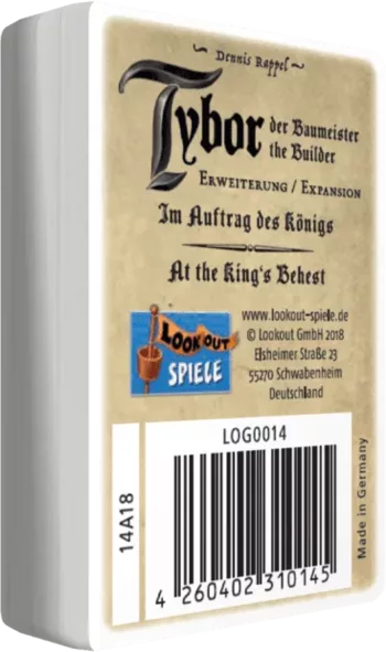 Tybor der Baumeister: Auf Geheiß des Königs besteht aus vierundzwanzig neuen Karten (vier davon sind Regel-/Deckkarten), die drei Module umfassen, die einzeln oder in beliebiger Kombination zum Basisspiel Tybor der Baumeister hinzugefügt werden können. Die drei Module sind: 1) Königliche Erlasse
