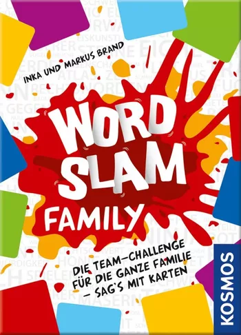 Im Kommunikationsspiel Word Slam treten zwei Teams gleichzeitig gegeneinander an. In jeder Runde versucht ein Spieler jedes Teams, seine Teamkollegen dazu zu bringen, ein verstecktes Wort oder einen versteckten Ausdruck zu erraten, wobei nur die 105 Erklärungskarten aus der Schachtel verwendet werden dürfen. Sprechen und Schauspielern ist verboten! Sie müssen ihre Geschichten nur mit Hilfe der 105 Karten erzählen, auf denen jeweils ein Wort steht: ein Substantiv, ein Verb, ein Adjektiv oder eine Präposition. Ein Spieler kann so viele Erklärungskarten verwenden, wie er möchte, und das Team, das zuerst richtig rät, erhält einen Punkt. Das Team mit den meisten Punkten am Ende des Spiels gewinnt! Word Slam Family bietet das gleiche Spielprinzip wie das Original Word Slam in einem kompakten Format. Diese Version enthält 100 Story-Wortkarten und 100 Antwortkarten mit insgesamt 600 Antwortbegriffen. Die Antwortkarten sind im Gegensatz zum Originalspiel in sieben Kategorien unterteilt.
